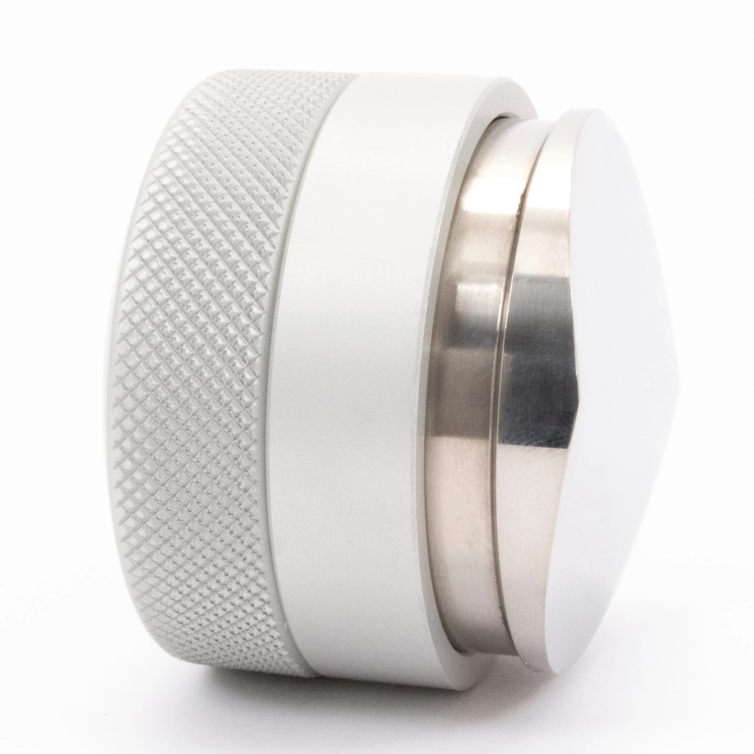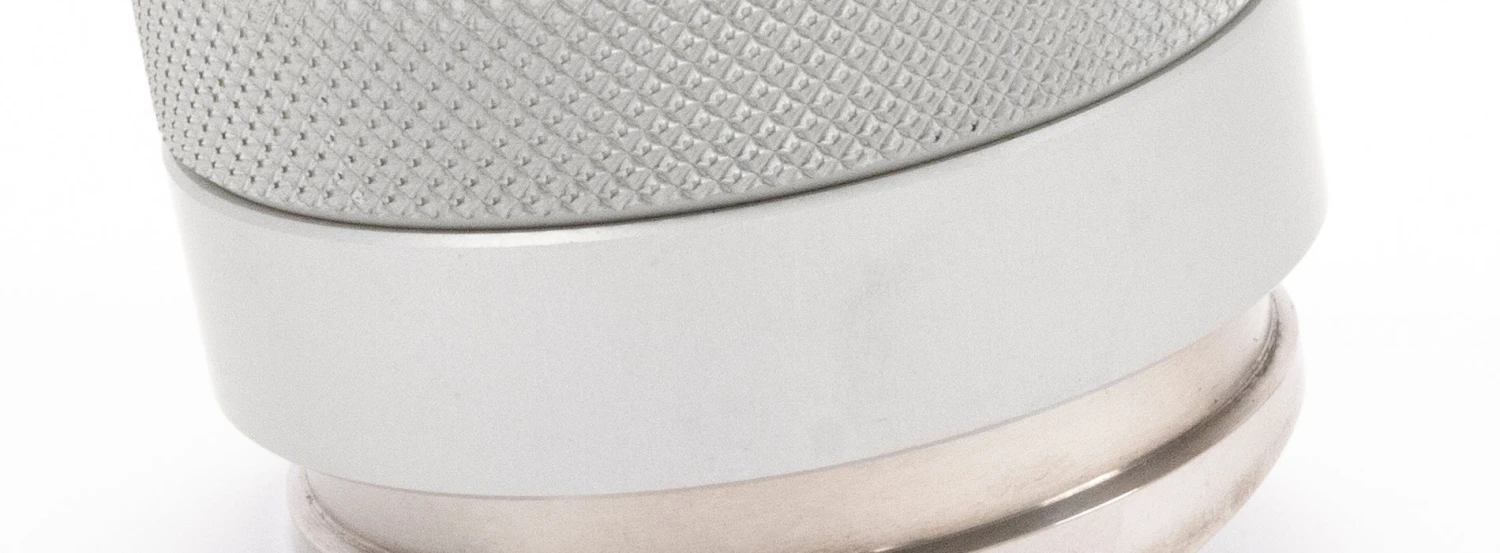 By gripping the adjustment ring and turning the handle counterclockwise, you can release the wedge to raise or lower the height of the blades depending on your dose and the size basket that you’re using. The textured handle is made of aluminum while the adjustment ring and blades themselves are made out of steel.