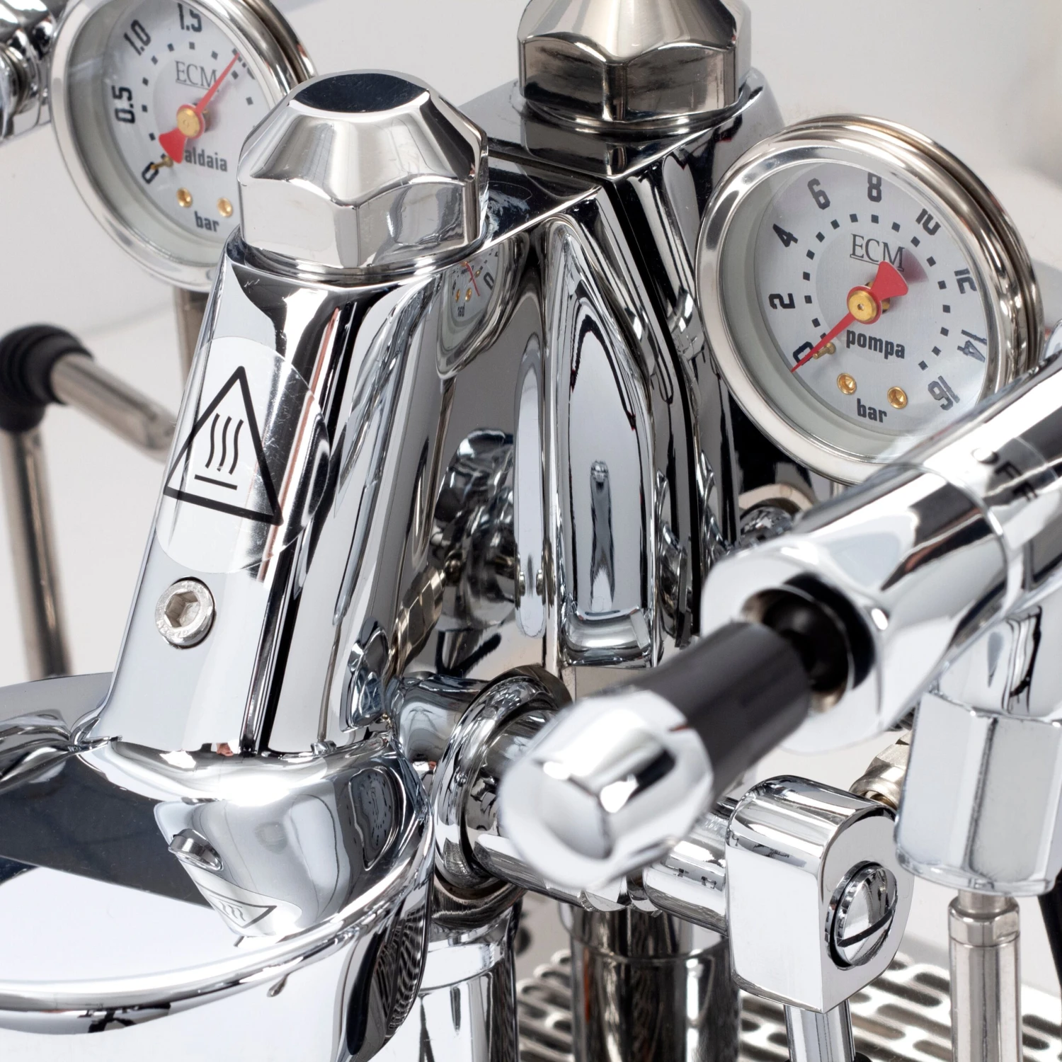 Less obvious advantages can be found in the iconic E61 brew group, which ECM has updated with stainless-steel internal components, as well as a single top cap for a cleaner aesthetic that other machines lack. These stainless-steel internals add much greater durability and resistance to calcium build-up for more straightforward maintenance, streamlining the experience of owning an espresso machine overall.