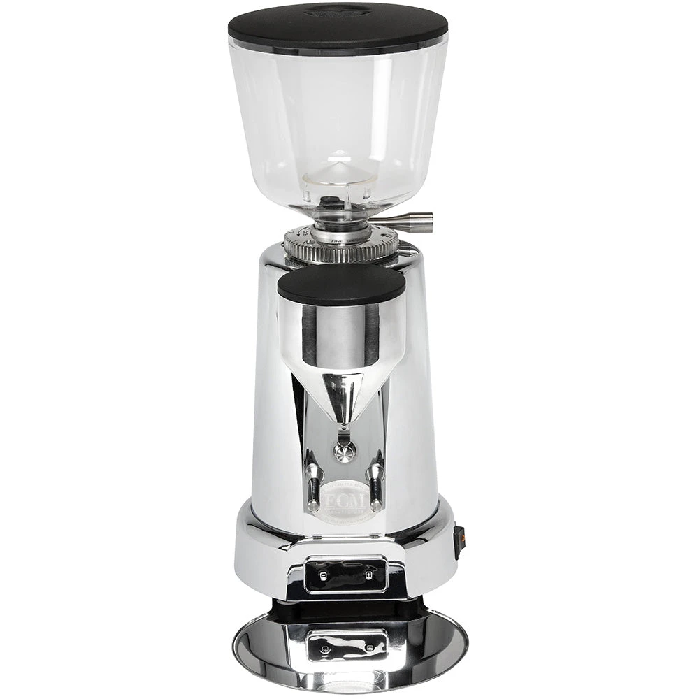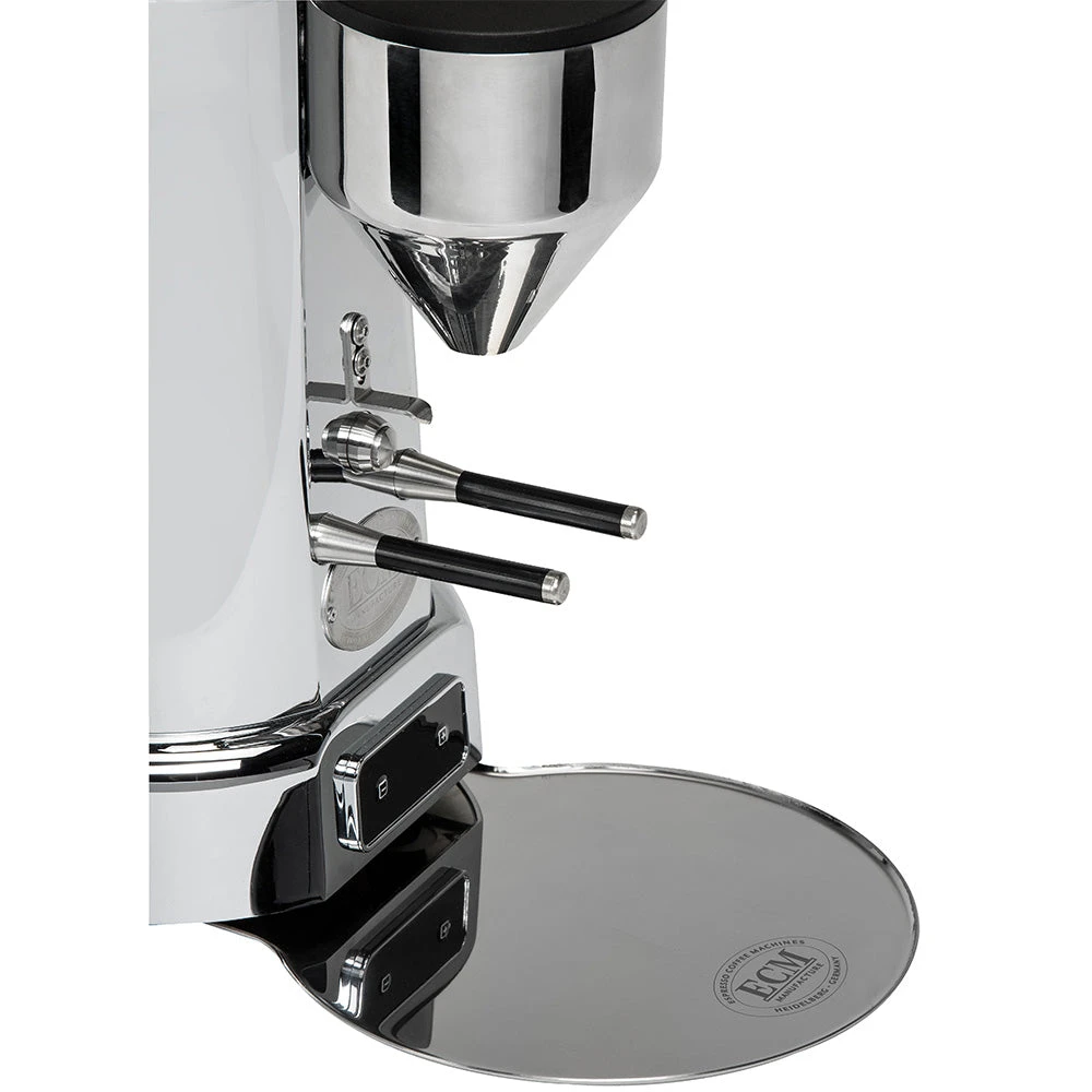 The ECM V-Titan 64 is a powerhouse prosumer/light commercial-level grinder with 1950’s styling and a commercial-grade heart. At the core of the V-Titan are two flat, titanium-coated 64mm burrs, from which it gets its name.