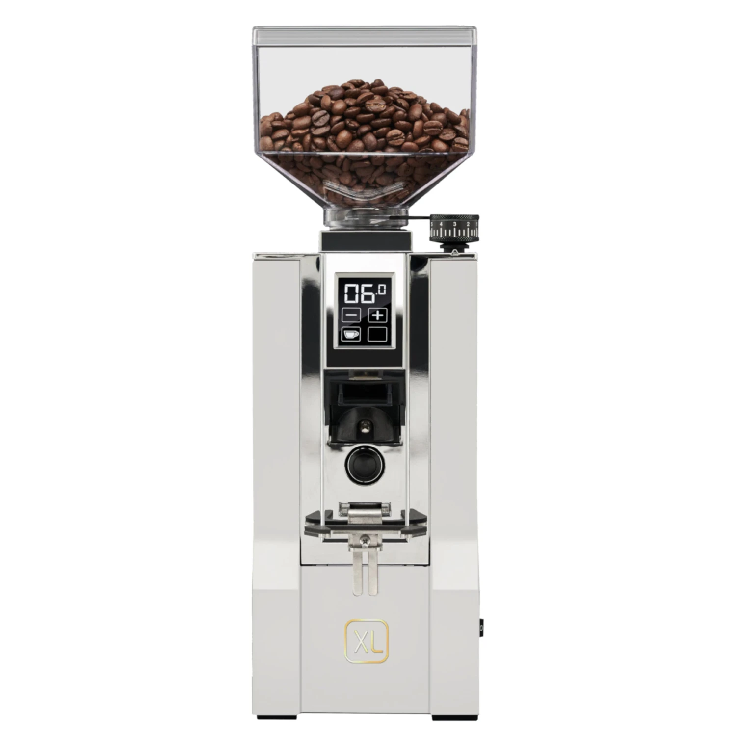 Visually, the Mignon XL is a thing of beauty. With a pristine white finish, the Mignon XL will add a touch of elegance to just about any at-home or café coffee bar. A simple, yet bold “XL” written in gold visible on the front of the machine, and a golden Eureka emblem on the back, provide an added layer of excellence to an already fantastic design.
