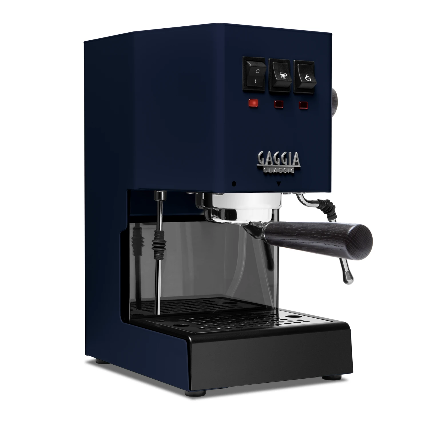 Gaggia Classic Evo Pro Espresso Machine In Classic Blue With Blackened Oak