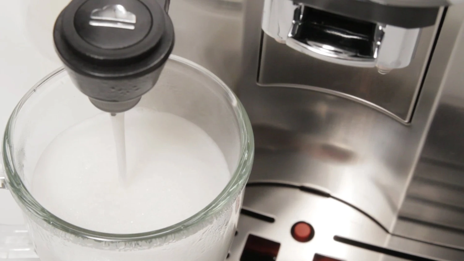 To prepare specialty milk drinks, the Anima Deluxe uses an auto-frothing Cappuccinatore which siphons and froths milk directly from a container and dispenses it into your cup. There is a dedicated button located on the front of the machine to activate the frothing cycle and produce rich, creamy milk foam. The Cappuccinatore can also be used to dispense hot water for drinks like a Cafe Americano or hot tea.