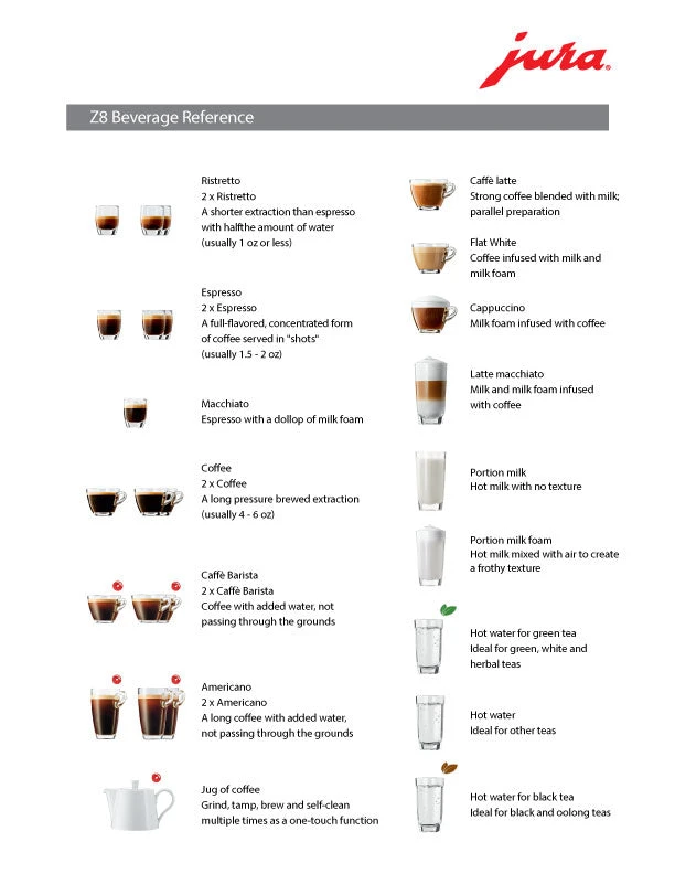 While the Z8 offers the more traditional specialties including, ristretto, espresso, cappuccino, caffè latte, espresso macchiato, latte macchiato, and Flat White, it manages to specialize in making longer, lighter drinks. To that end, JURA implemented a special preparation method that combines coffee with hot water in such a way to properly brew these full-bodied, delicate drinks. For the tea lovers at every office, the Z8 can dispense hot water for green tea or black tea, with different selectable temperatures for both. Plus, the Z8’s bypass doser is available for anyone who needs to use pre-ground coffee.