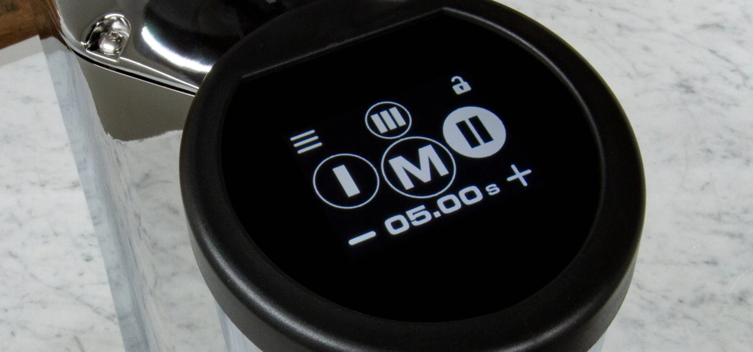 The SUPER FAUSTO also comes with a newly developed 2.8in digital touch screen with a shot counter and programmable dosing buttons that allow for quick adjustments and control. Up to three distinct grinding times can be programmed within 1/10th of a second, and a manual dispensing mode is available for free grinding operation. As a final touch, the grinder was designed to produce minimal noise, ensuring near-silent grinding while in operation..