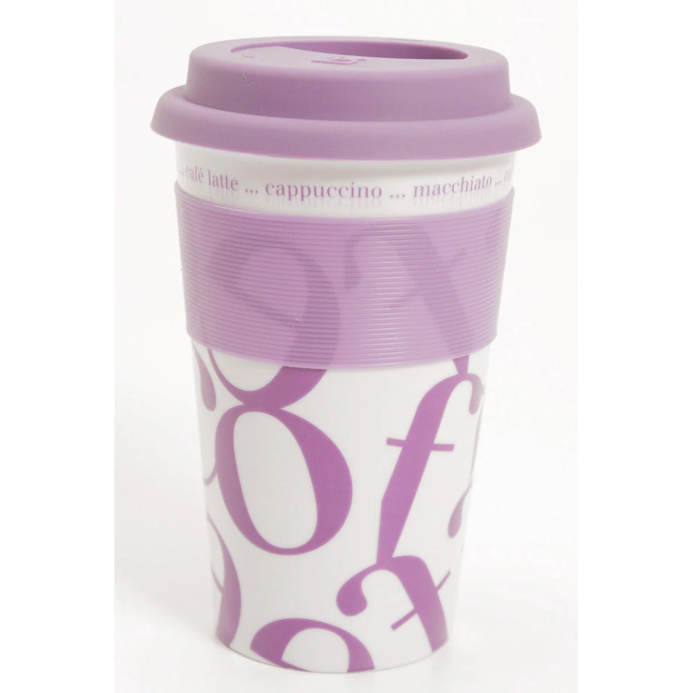 The Waechtersbach Coffee-Script-Collage 12oz Travel Mug with Silicon Lids and Grip-Strip brighten your morning commute in lively colors of purple, blue, lime green and red. Designed by the world-renowned porcelain experts at Konitz-Waechtersbach and manufactured at their plant in Thailand, these tough, porcelain, 5 ½” tall mugs have a great hand-feel and a well designed side slope complemented by the silicon grip-strip so you can keep a one-handed hold on your brew as you hurry to work. The bold script and bright colors make your mug easily recognizable in an office environment. They are dishwasher safe and make great presents for the commuter on your gift list.